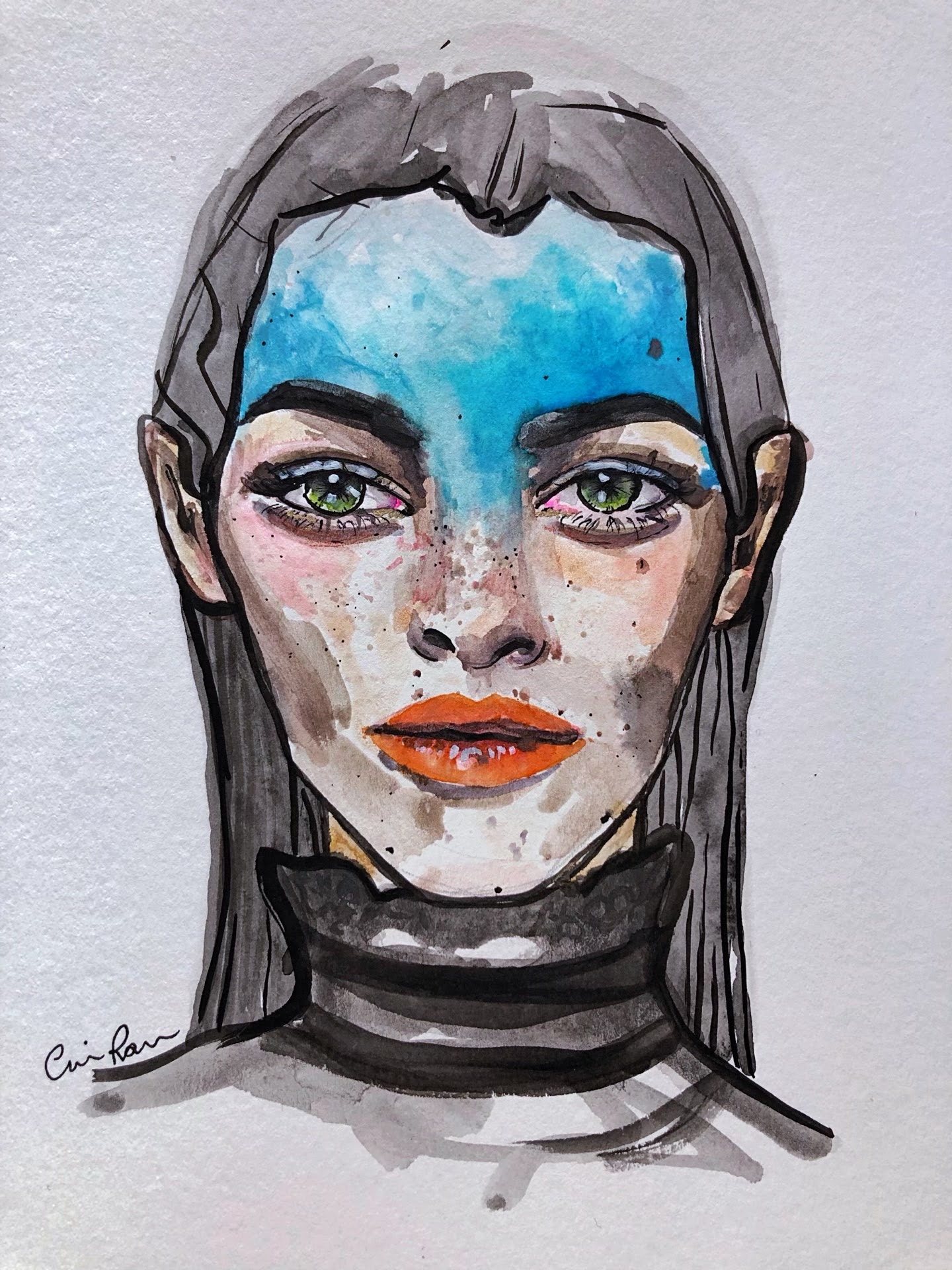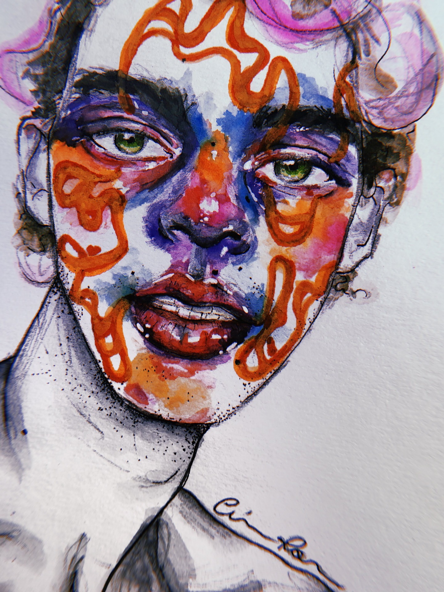 Watercolor and marker over paper.